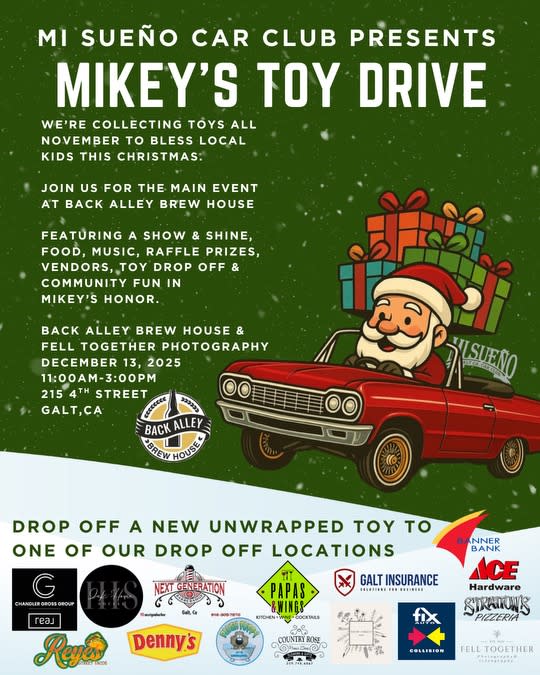 Collecting toys all November long to help bless local kids this Christmas! Stop by for the main event at Back Alley Brewhouse, a community celebration filled with heart and holiday spirit Show & Shine, food, music, raffle prizes, vendors, toy drop-off, and Community fun for all ages Come together, spread joy, and make a difference this holiday season. Your support helps bring Christmas magic to children right here at home.